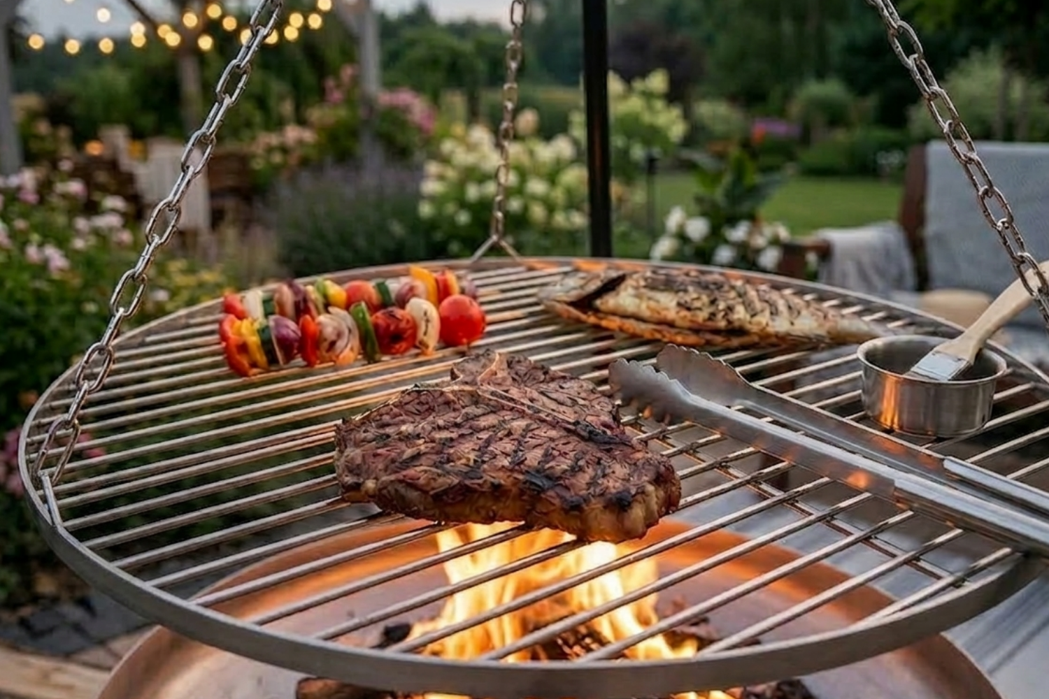 Ruszt wykonano z wysokiej jakości stali nierdzewnej, która jest bezpieczna w kontakcie z żywnością i zapewnia długą żywotność produktu. Do zestawu dołączono solidny łańcuch z karabińczykami oraz praktyczne drewniane akcesoria. To polska jakość tworzona z dbałością o szczegóły – wybierając ten produkt, wspierasz lokalne rzemiosło i świadome podejście do grillowania – to ma znaczenie.
